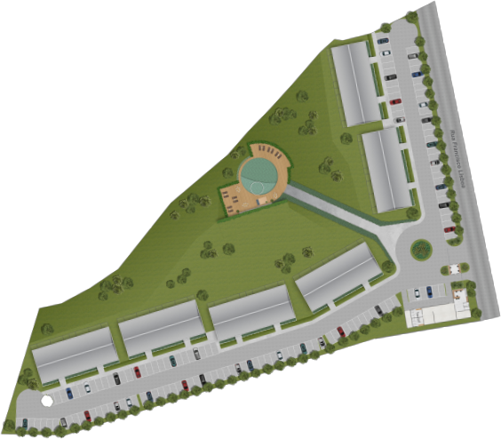 06 blocos totalmente integrados ao entorno, estrategicamente posicionados para maximizar a vista do campo.