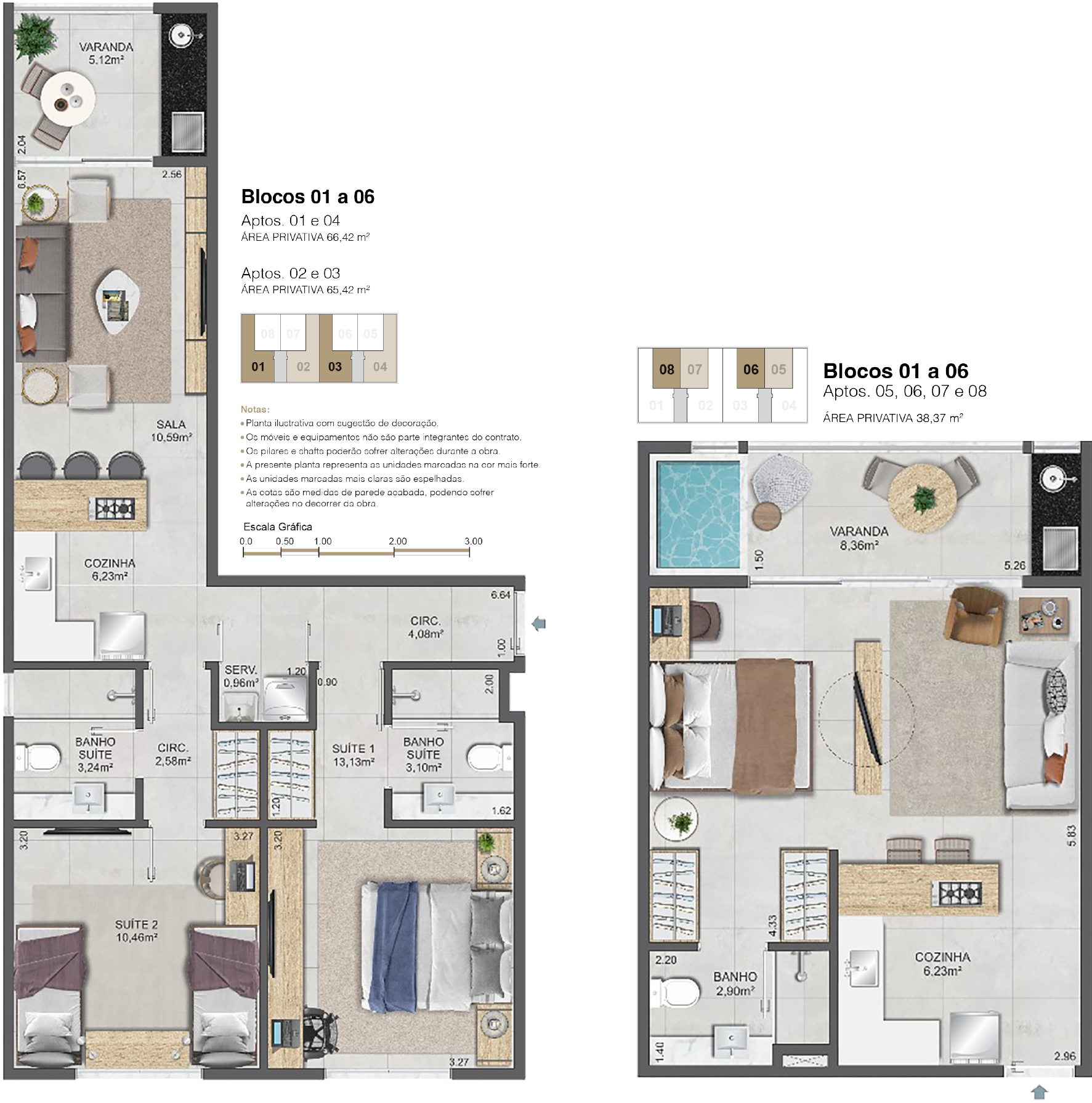 Com opções de lofts ou unidades de 02 quartos com 02 suítes (01 canadense), as plantas foram pensadas para aliar conforto, modernidade e funcionalidade.