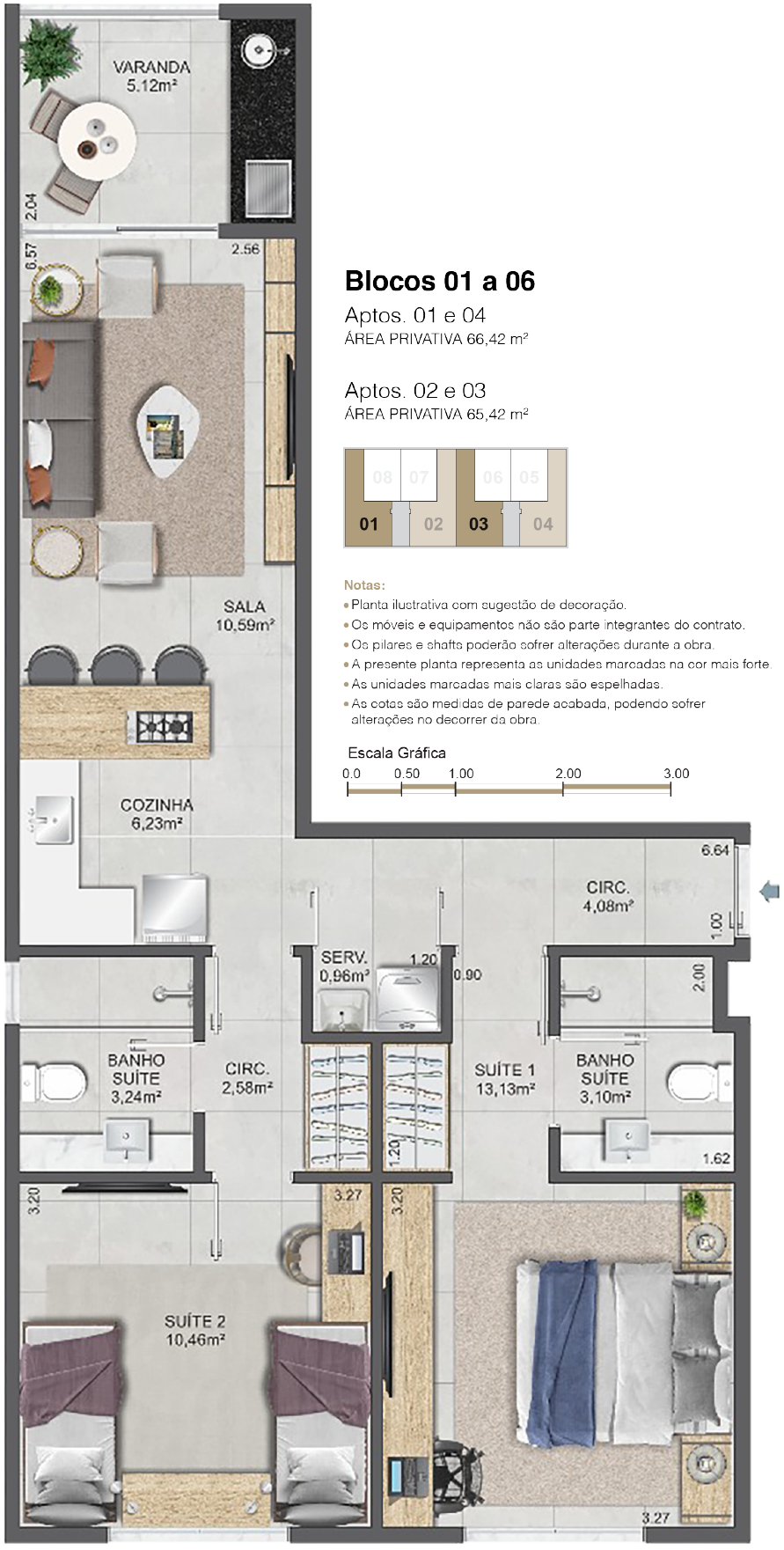 Com opções de lofts ou unidades de 02 quartos com 02 suítes (01 canadense), as plantas foram pensadas para aliar conforto, modernidade e funcionalidade.